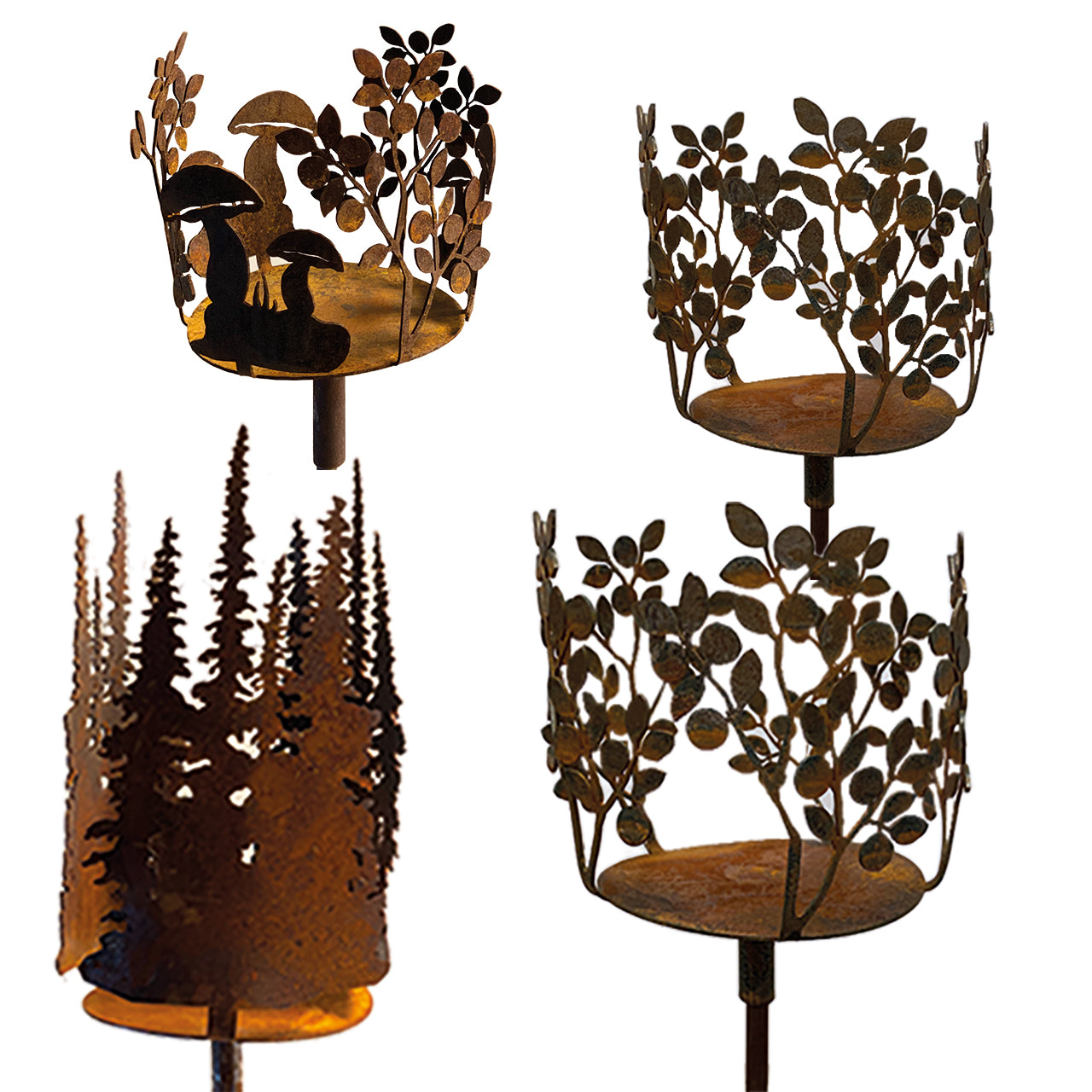 Våra marschallhållare i cortenstål är vackert roströda och passar året om. De står sig fint mot trädgårdens växtlighet, men också mot vinterns snödrivor.