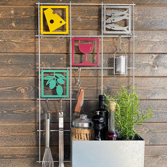 Rostiga odlingslådor i corten. Enkel upphängning i armeringsnät.