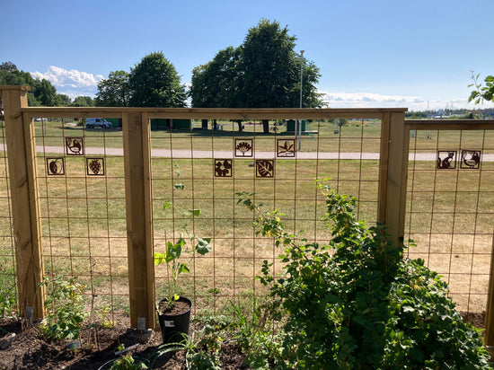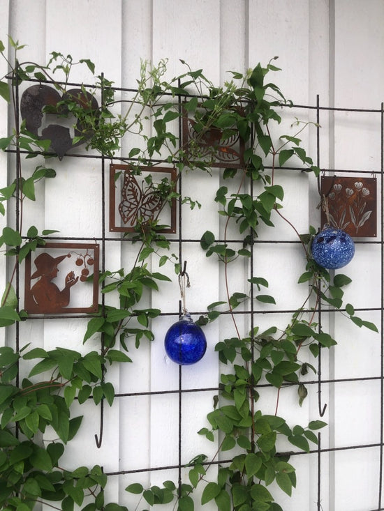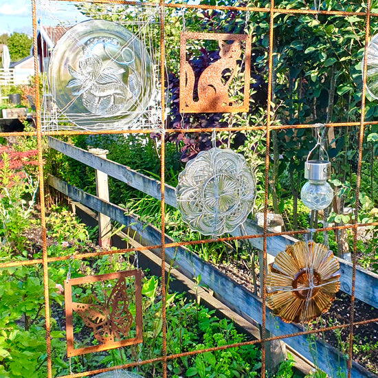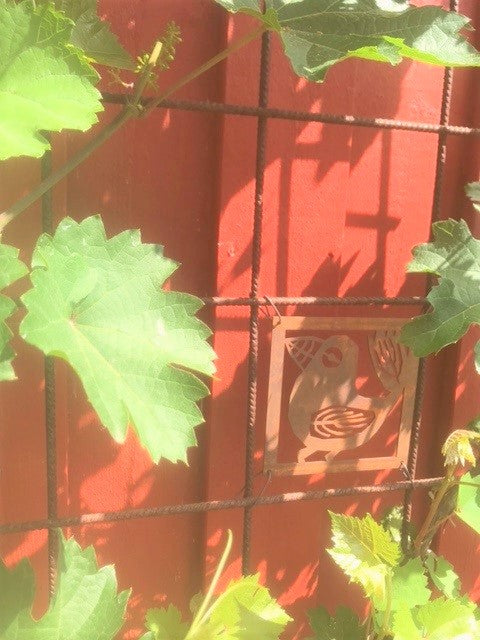 " Prydnadsplattor med fåglar blev en fin dekoration på våra växtstöd." /Petra