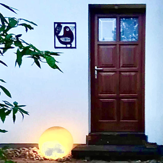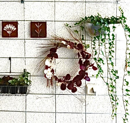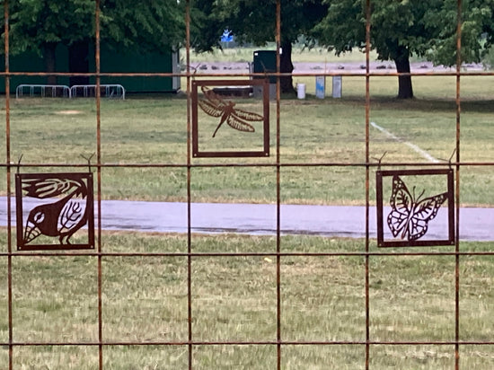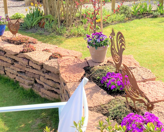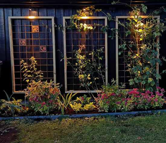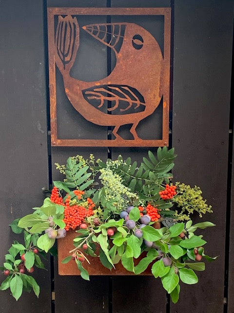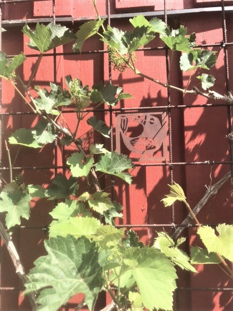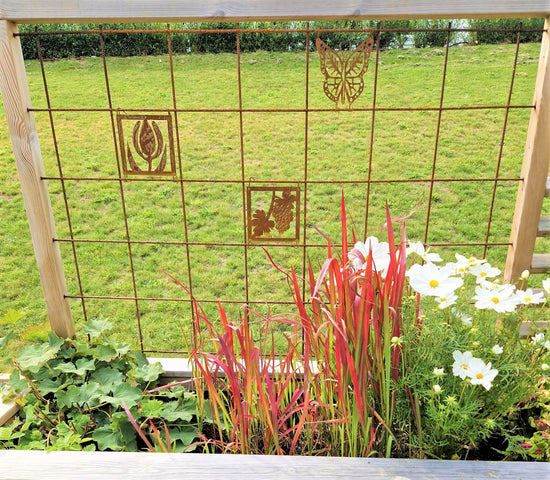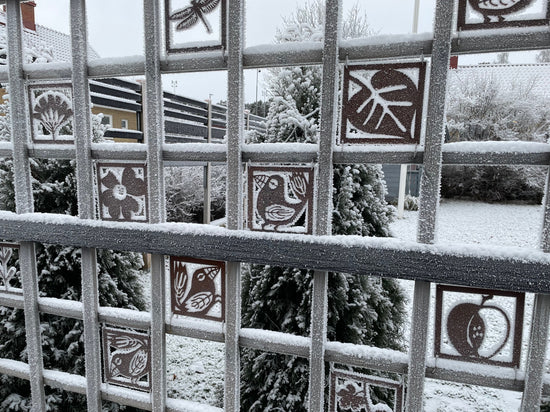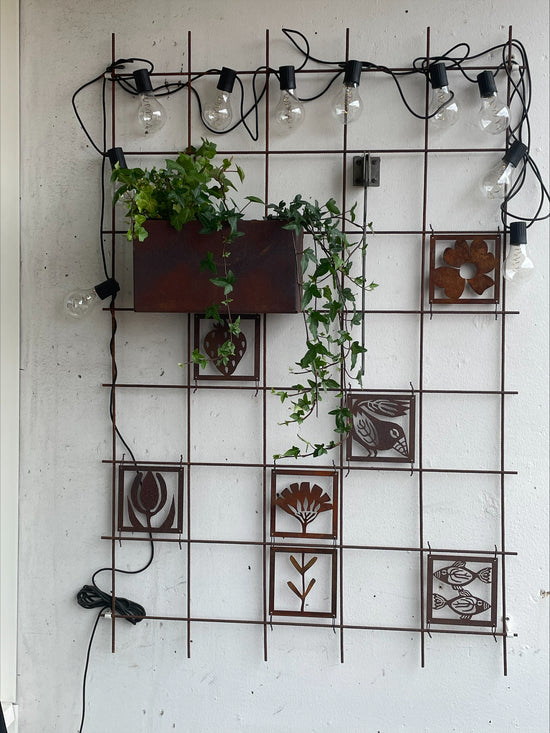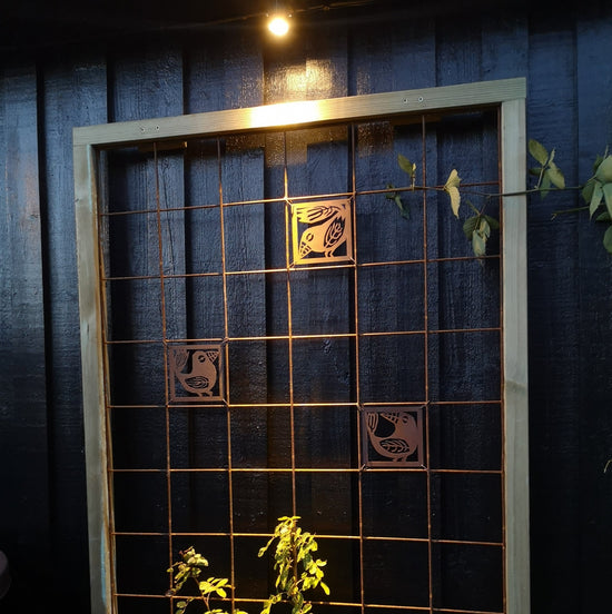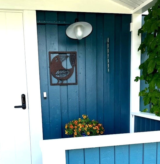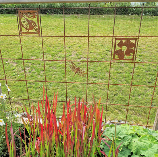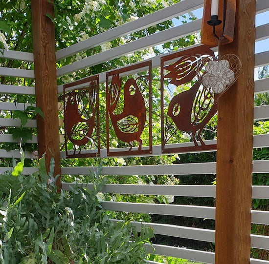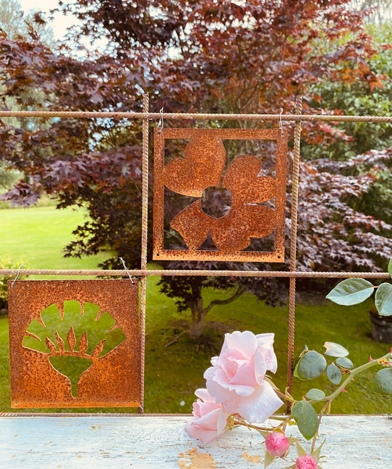 - Vi har en liten uteplats där vi satt upp ett "fuskfönster" på baksidan av ett förråd. Något saknades- Två rosttavlor! Vi är mycket nöjda! /Birgitta