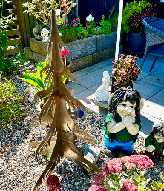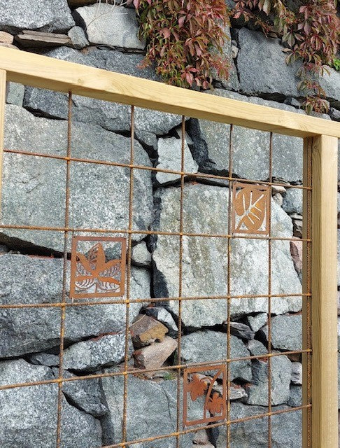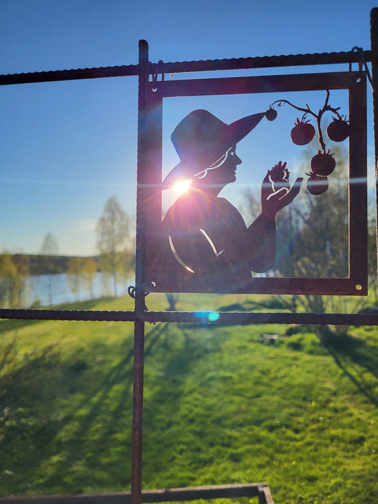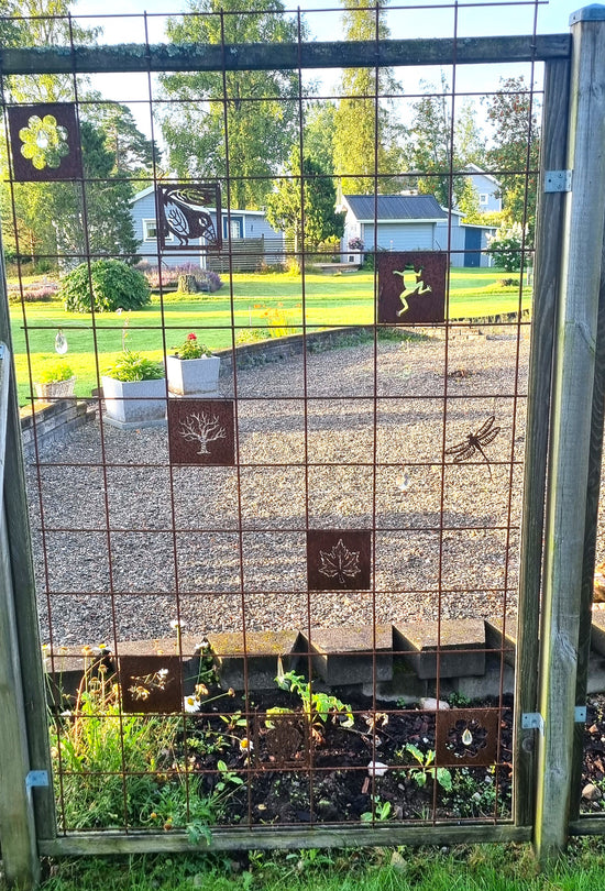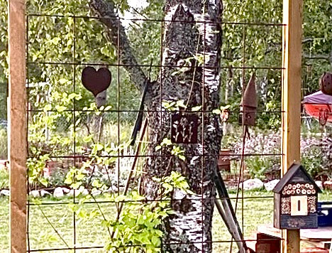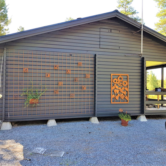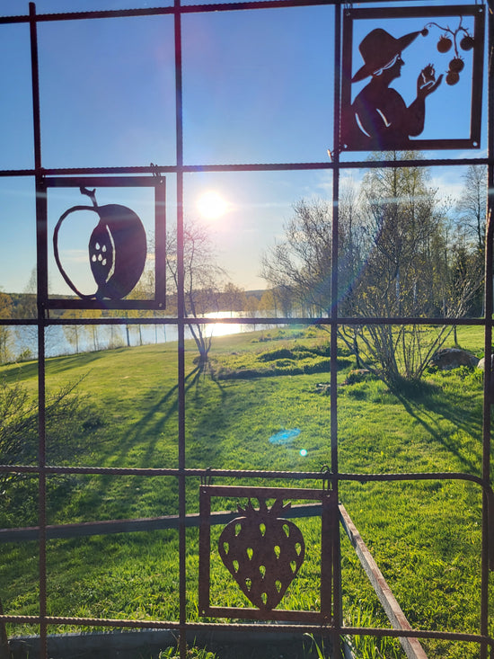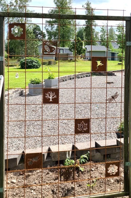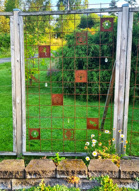 -Mina anfäder var skogsfinnar från Savolax. Jag fick en idé och byggde ett staket på tema skog. De rostiga plattorna passar fint. /Ewa