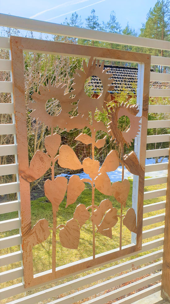 - Nu har den fina solrosen fått plats på vår altan. Det blev så fint. /Anette och Henry