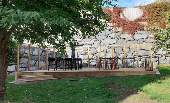 -Vi har byggt en uteplats i vår brf och smyckat den med plattor från Stubbviken. Det blev så snyggt, tycker vi.