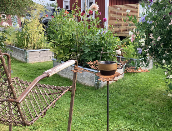 Margareta saknade ett "kaffebord" i trädgården. Hon modifierade en marschallhållare - och se så fint det blev!