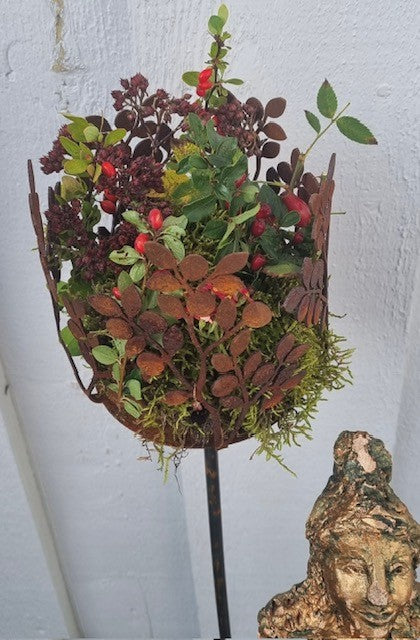 "Min fina marschallhållare - dekorerad med växter och blomster från trädgården." / Pia