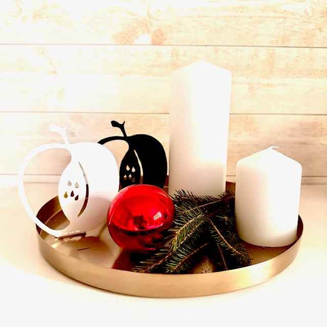 Äpple ingår i Serie-M, ett system med olika figurer försedda med magnet. Nu kan du skapa din egen bordsdekoration! Fäst det i våra bordsplattor eller något eget av metall, t.ex. en ljusbricka.