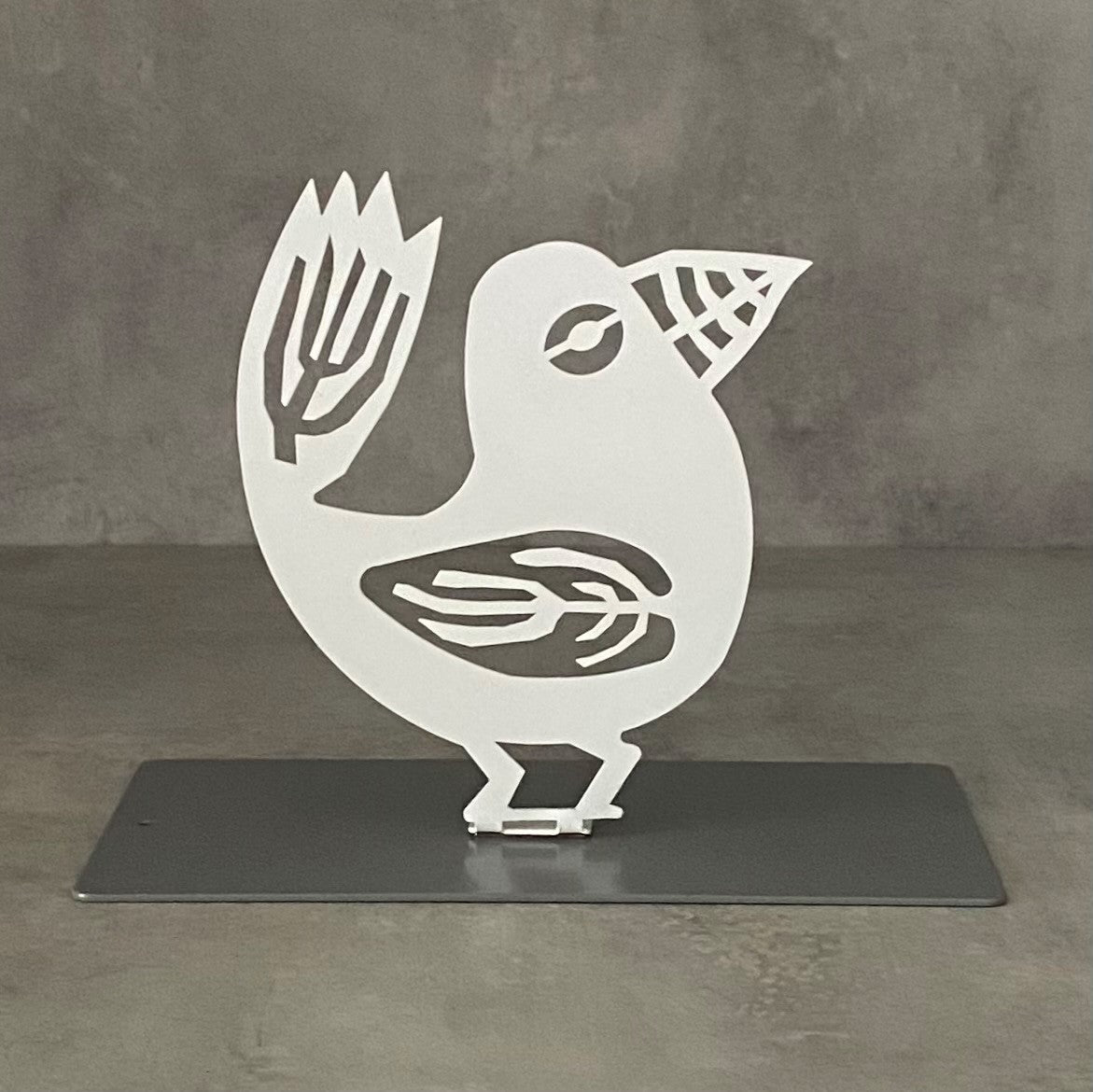Fågel Fia är tillverkad i pulverlackerad stål med h:17 cm, b:16 cm.