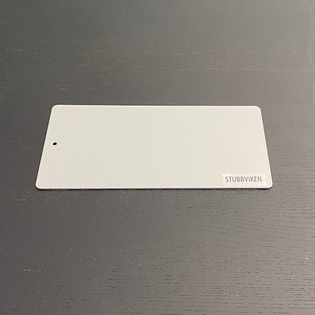 Bordsplatta i pulverlackerad stål med måtten 24 x 12 cm.