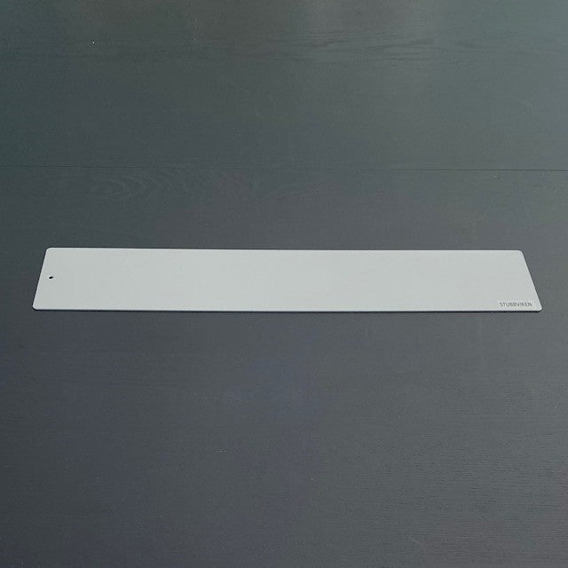 Bordsplatta i pulverlackerad stål med måtten 60 x 12 cm.