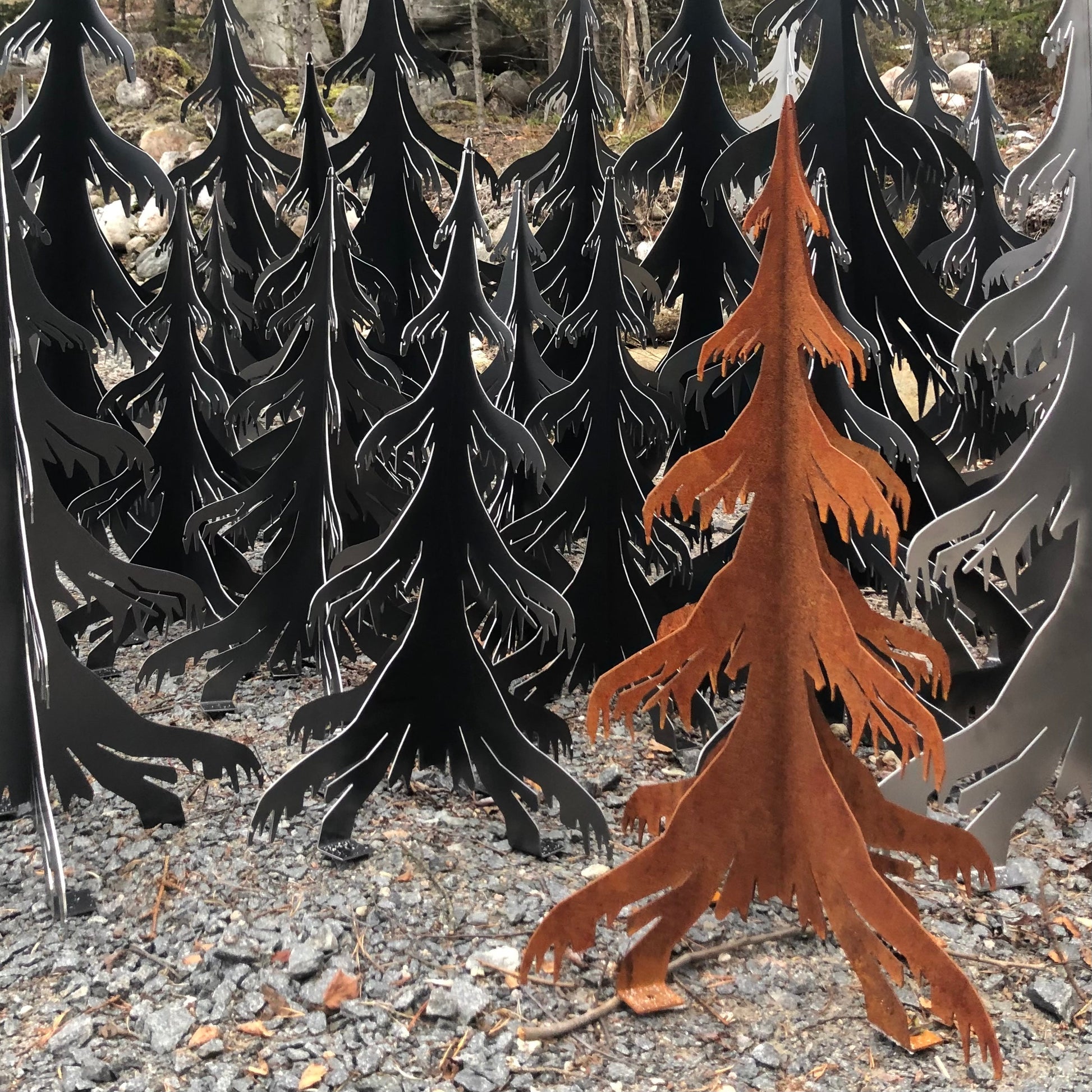 Gran i cortenstål - höjd 75 cm, med rost