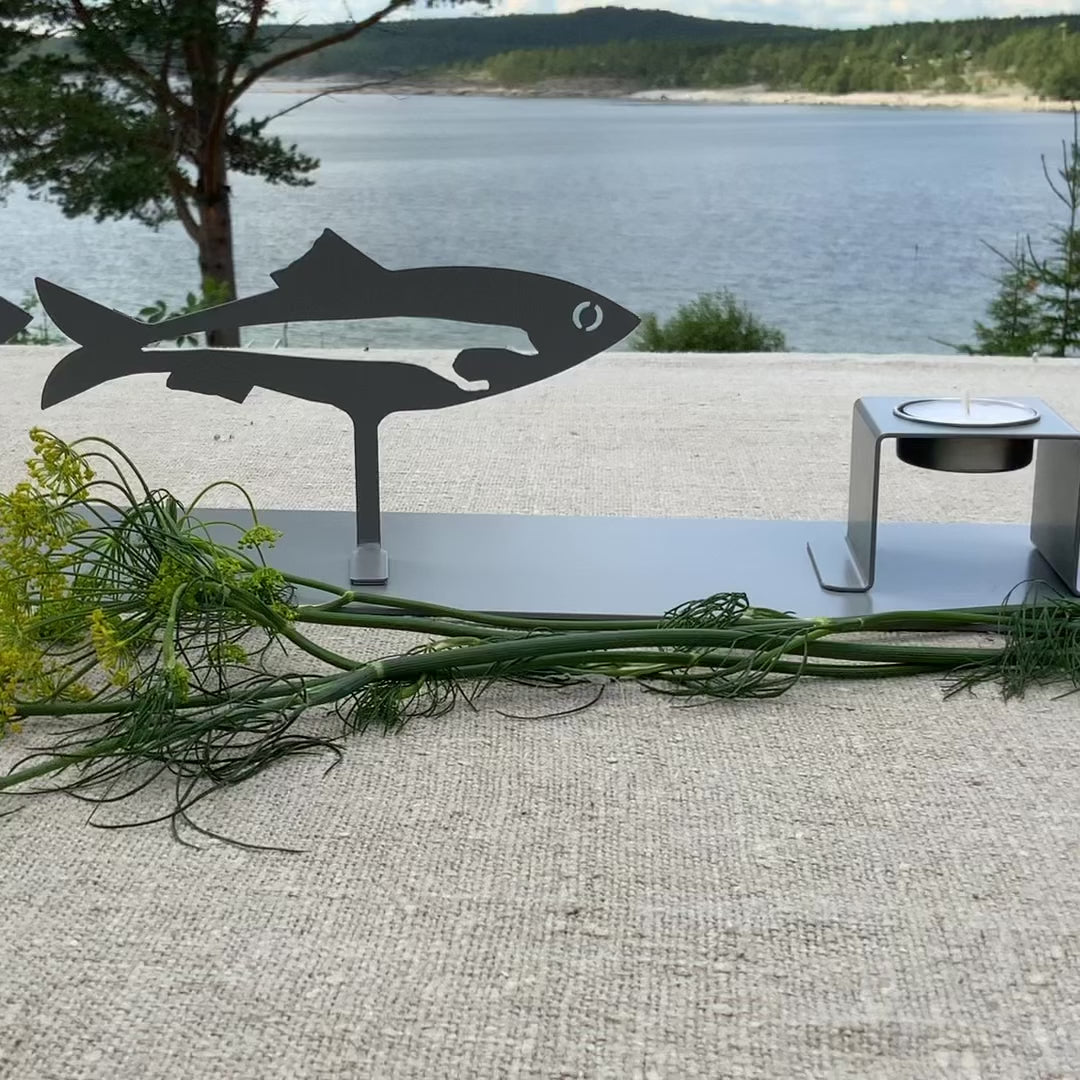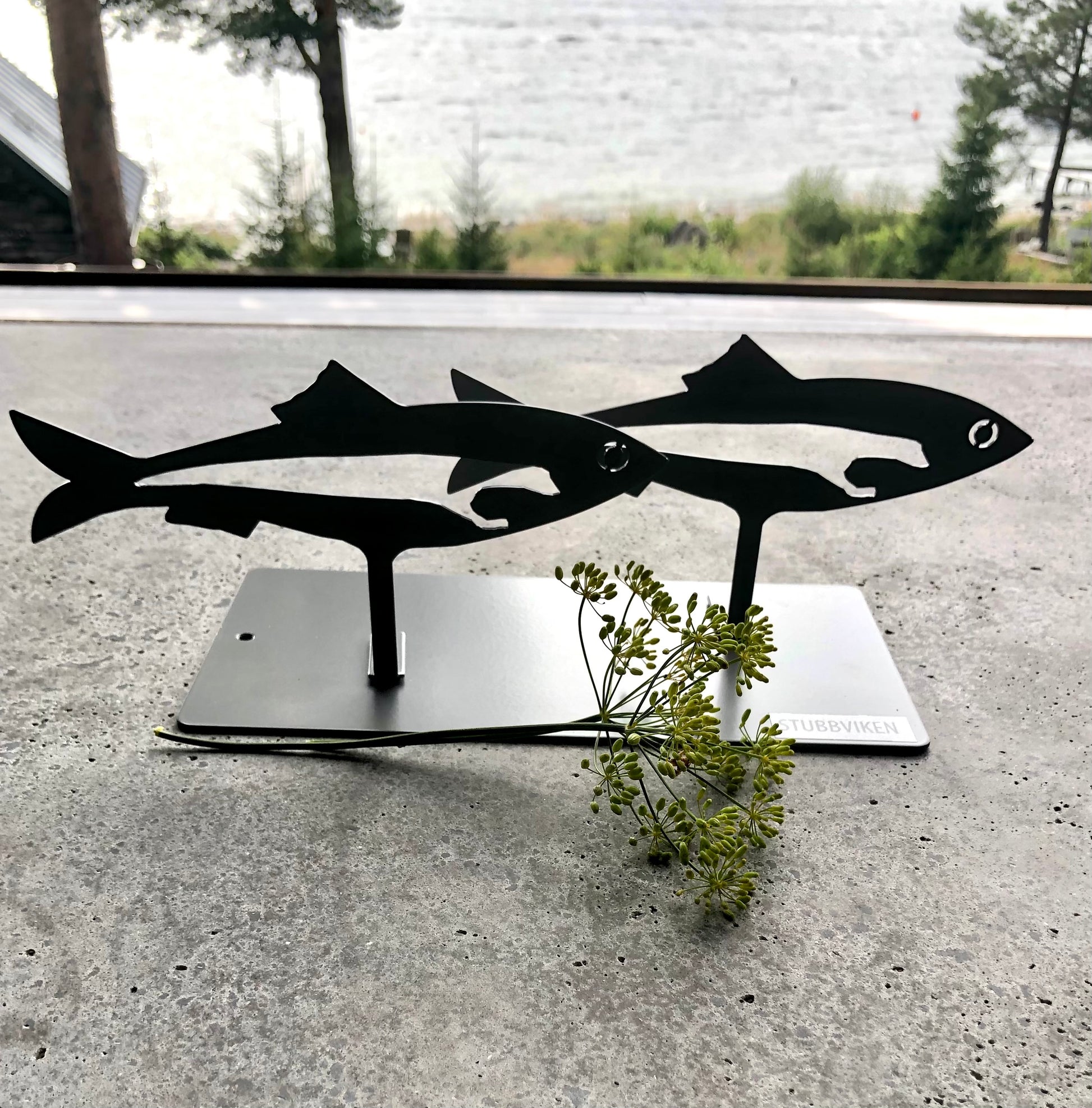 Paket med 2 strömmingar med magnet + grå bordsplatta 24 x 12 cm.