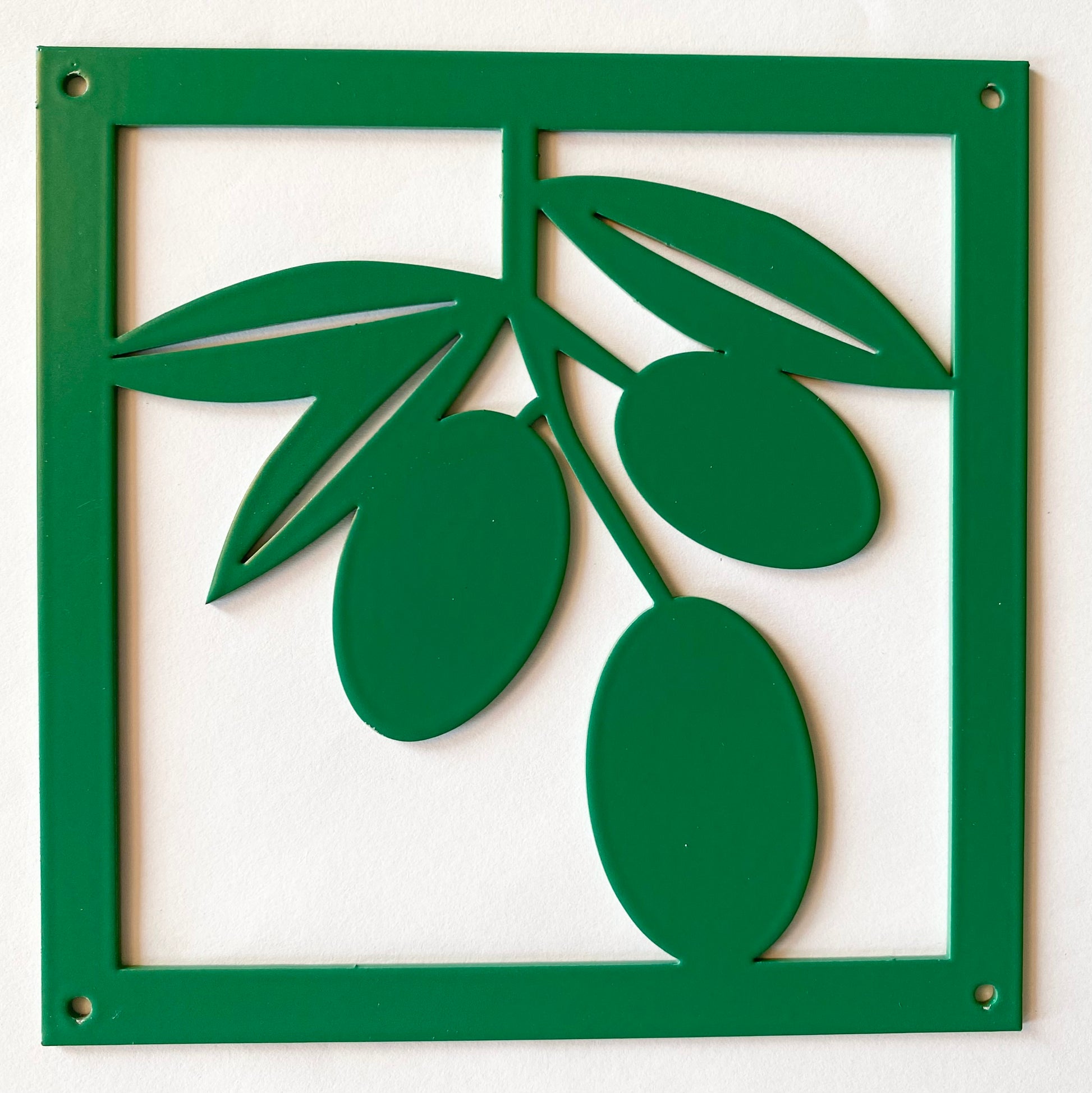 Prydnadsplatta Oliver tillverkas i pulverlackerad stål med måtten 13 x 13 cm.