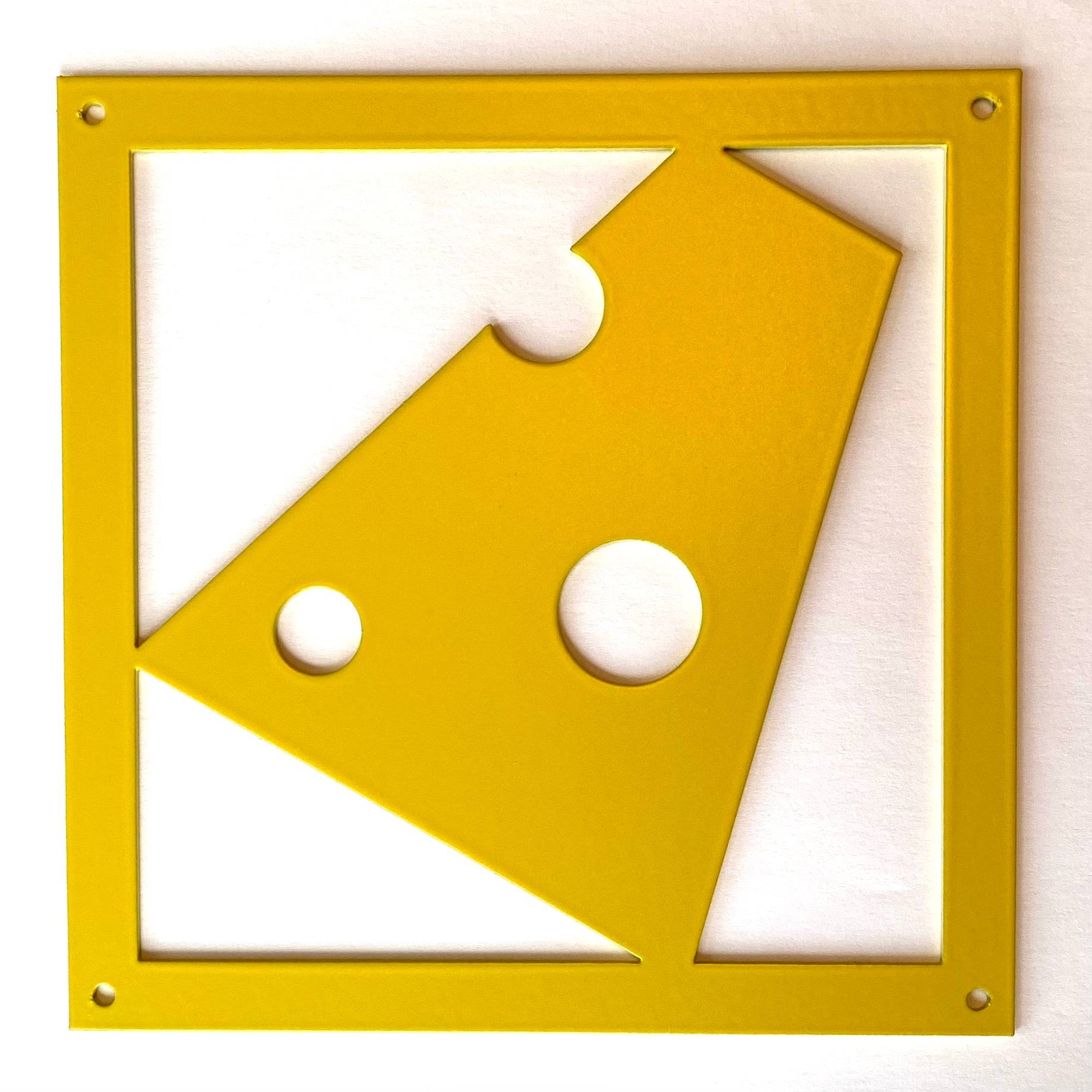 Prydnadsplatta Ost tillverkas i pulverlackerad stål med måtten 13 x 13 cm.