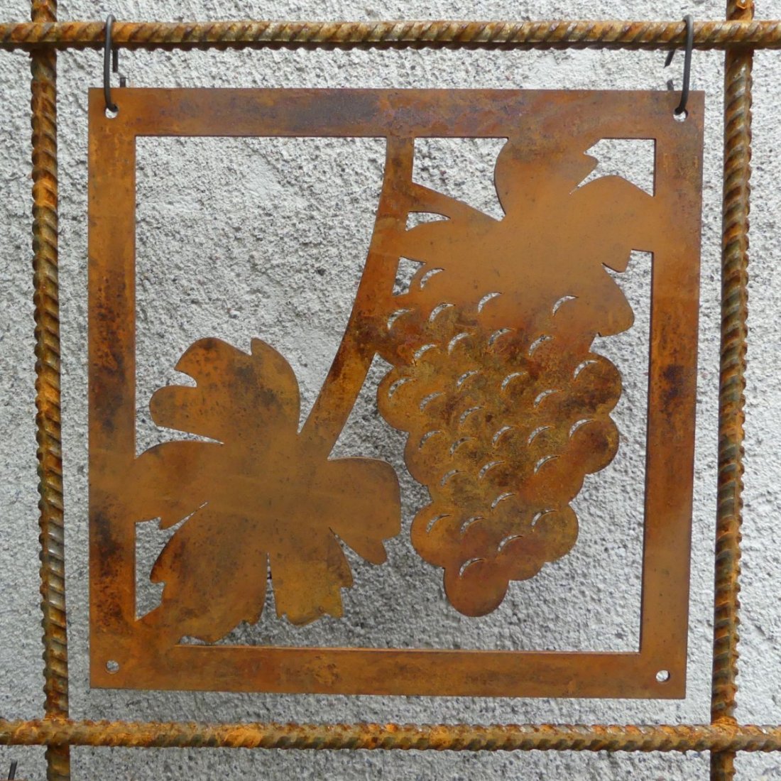 Prydnadsplatta Ranka 4 tillverkas i cortenstål med måtten 18 x18 cm med hål i varje hörn för fastsättning. 4 bitar ståltråd medföljer.