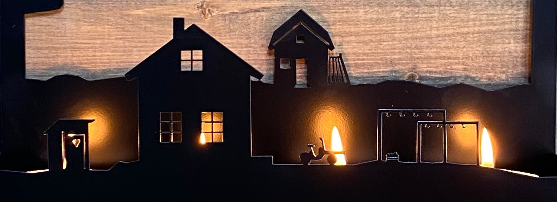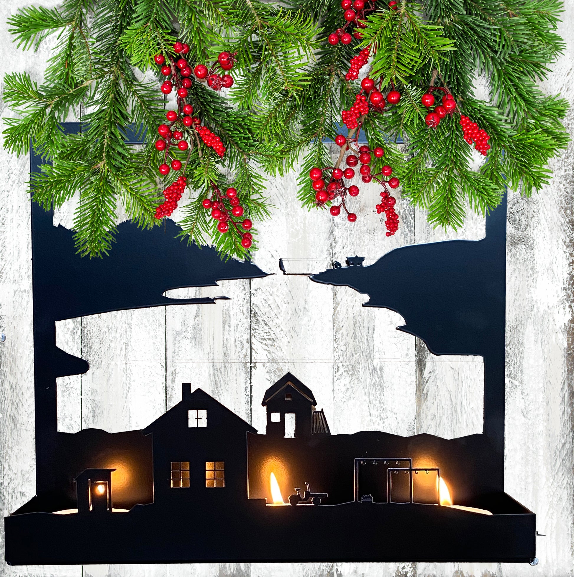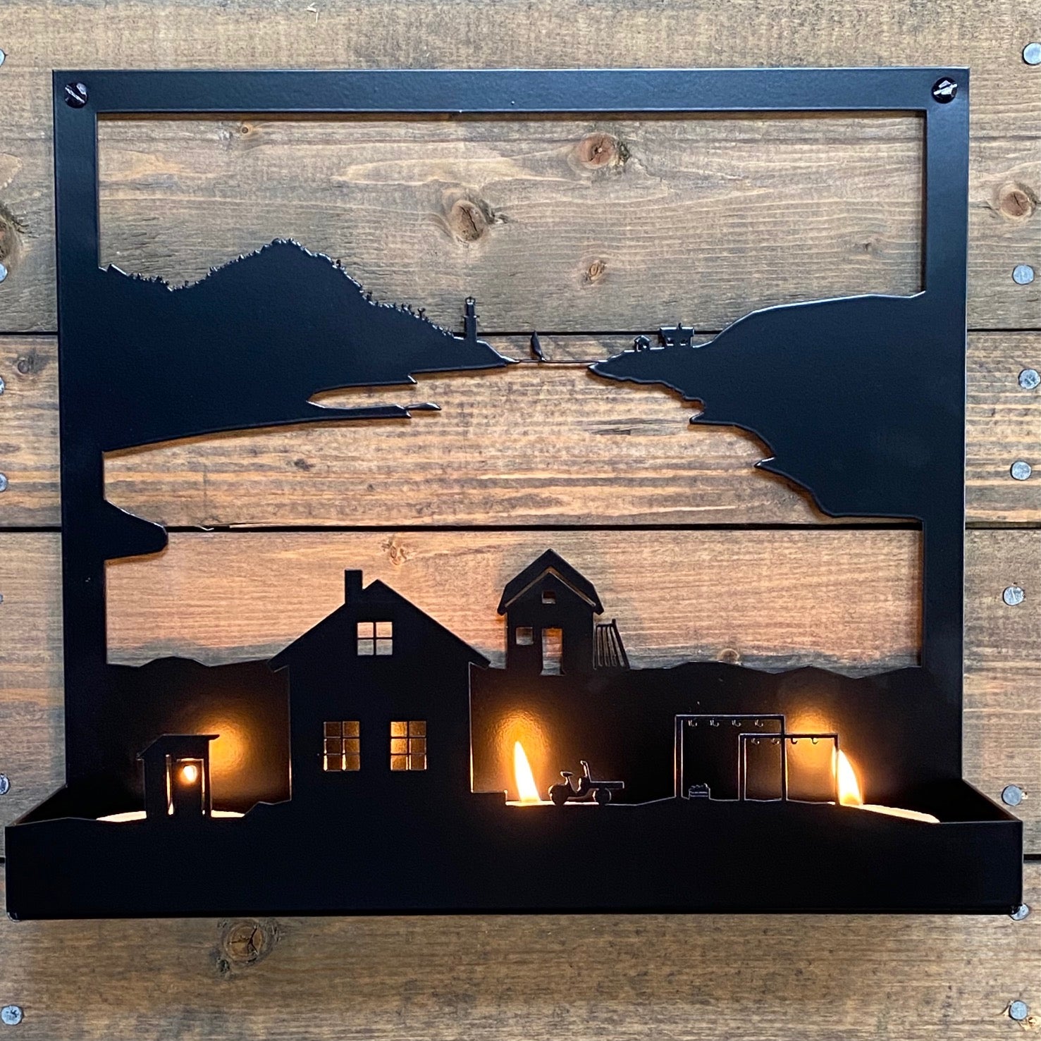 Väggljusstake i svart pulverlackerad plåt. Här får du en "Skärgårdsdröm" med charmigt skärgårdshus, utedass och sjöbod med brygga.