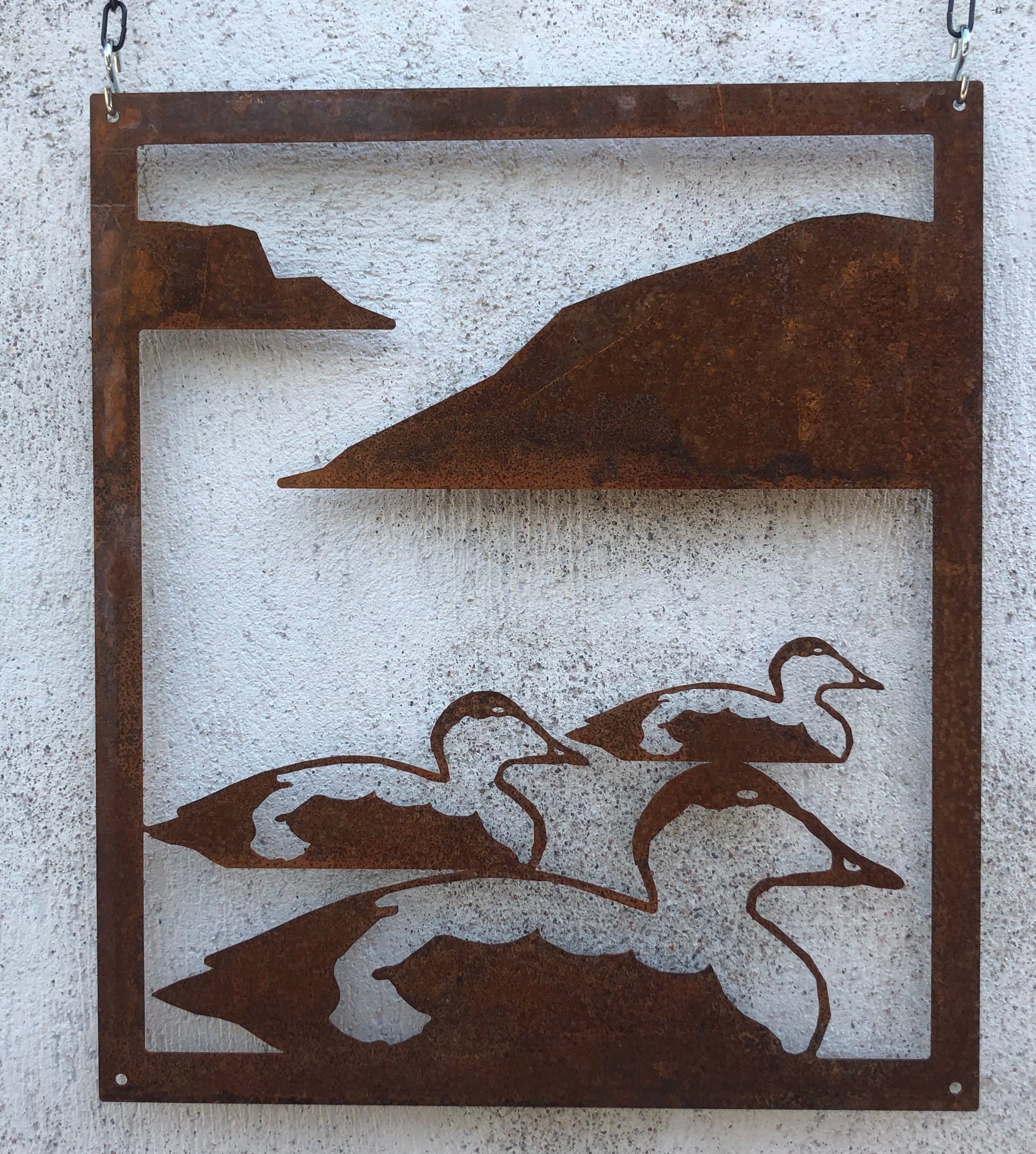 Väggplatta Ejdrar är tillverkad i cortenstål och levereras rostig tillsammans med 4 träskruvar och 4 distansbrickor.