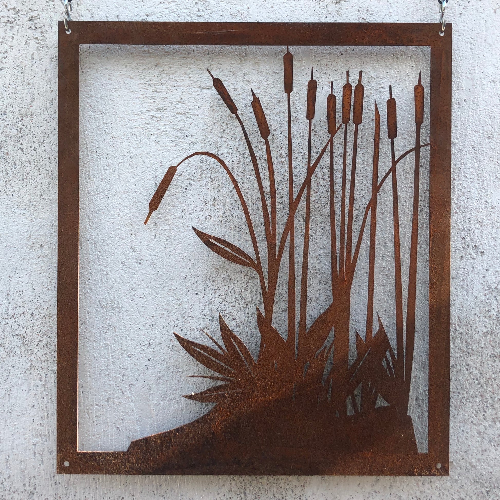 Väggplatta Kaveldun är tillverkad i cortenstål och levereras rostig tillsammans med 4 träskruvar och 4 distansbrickor.